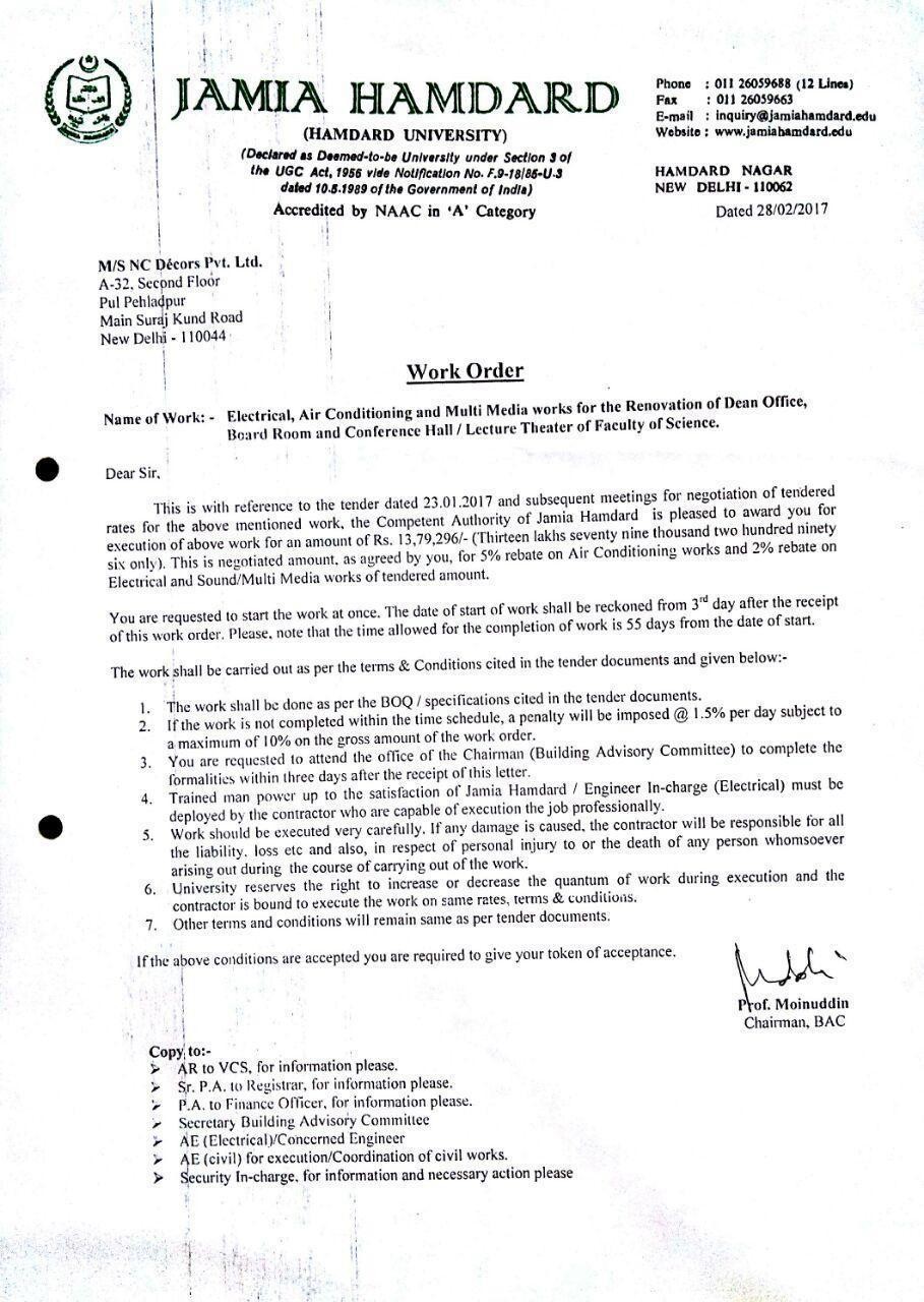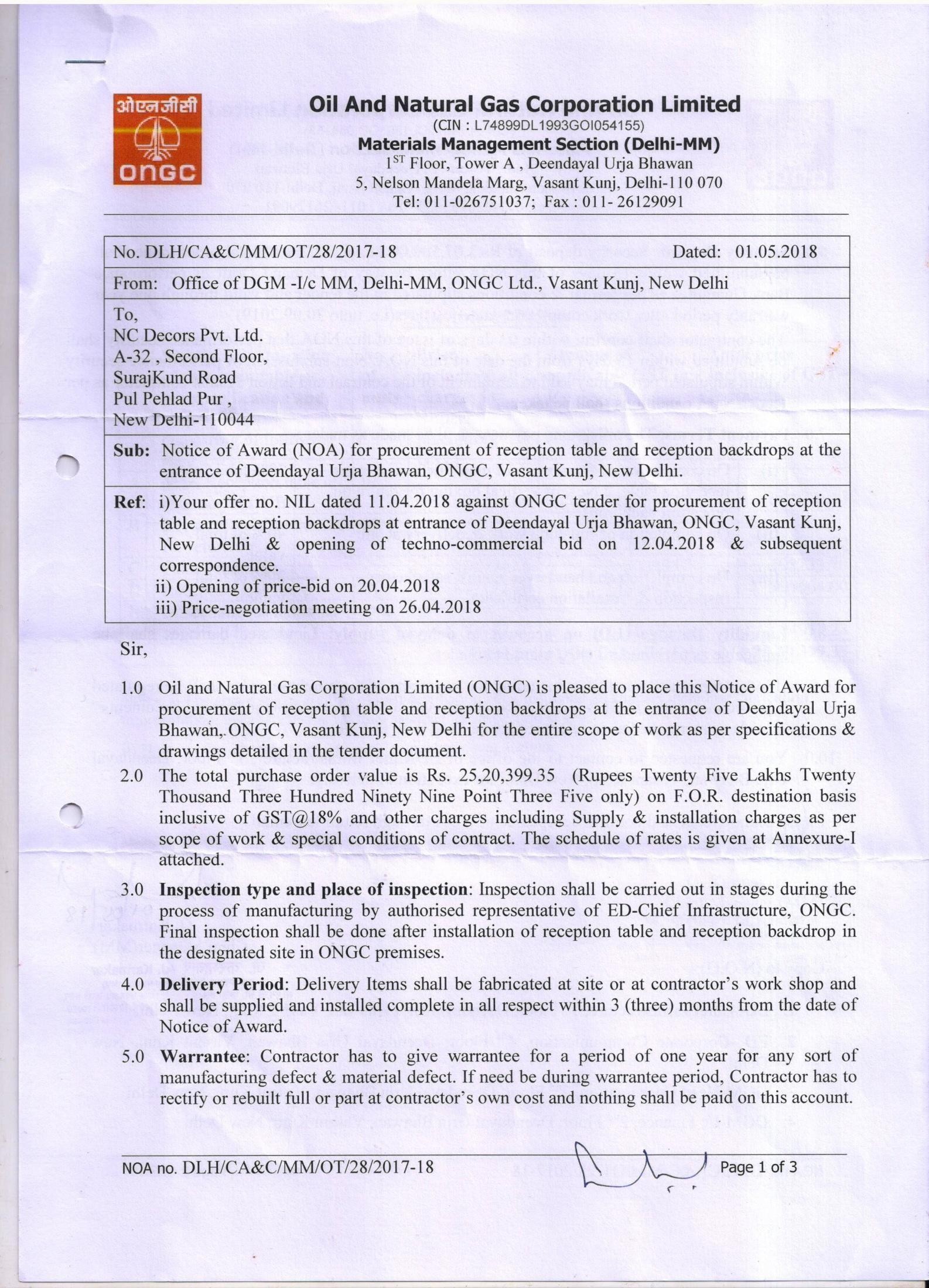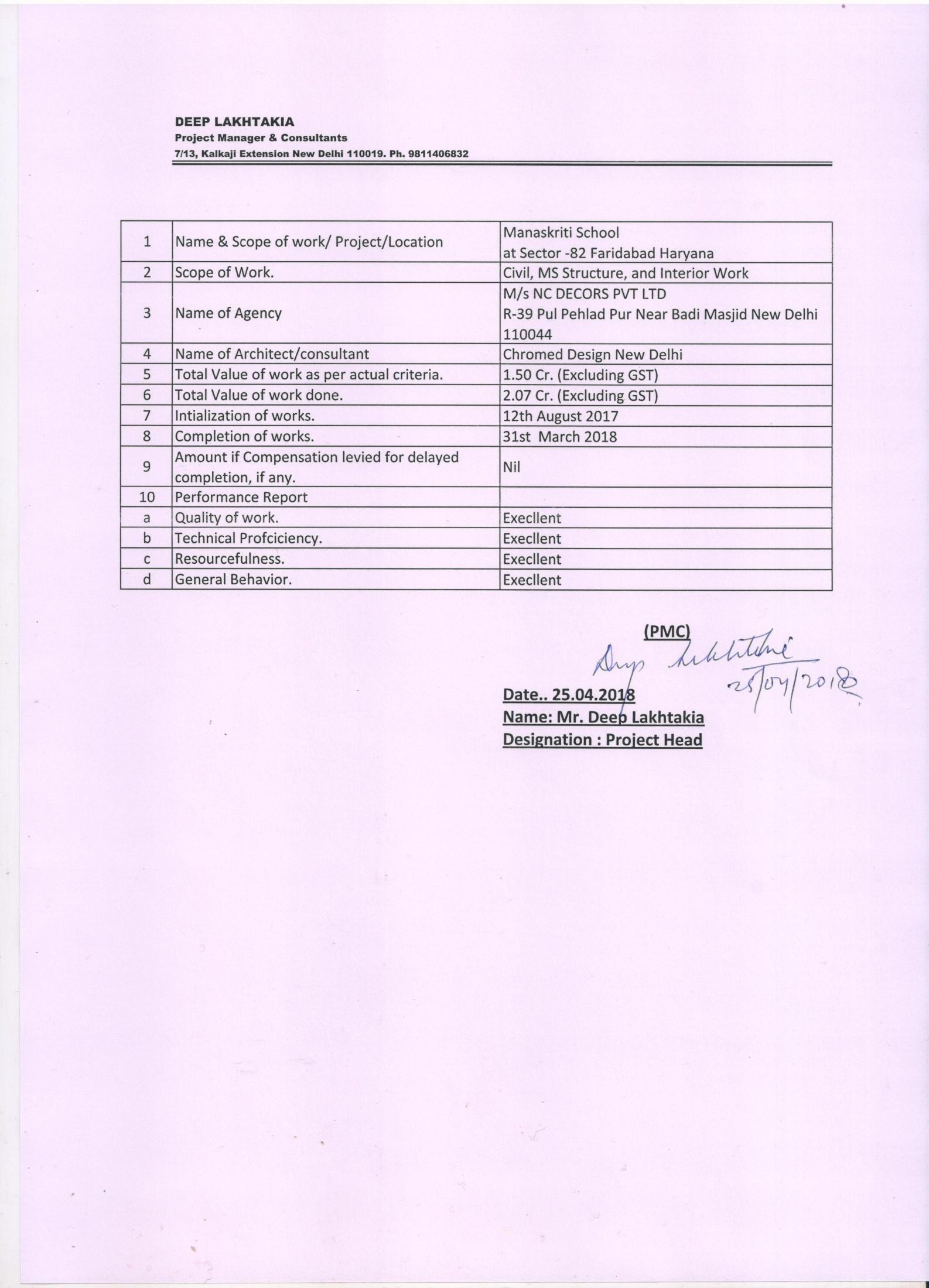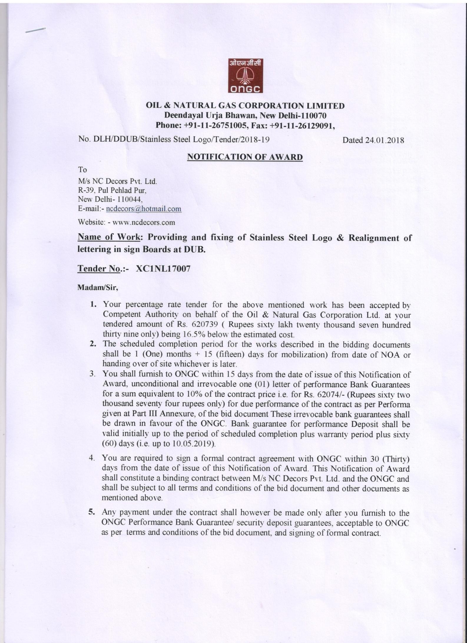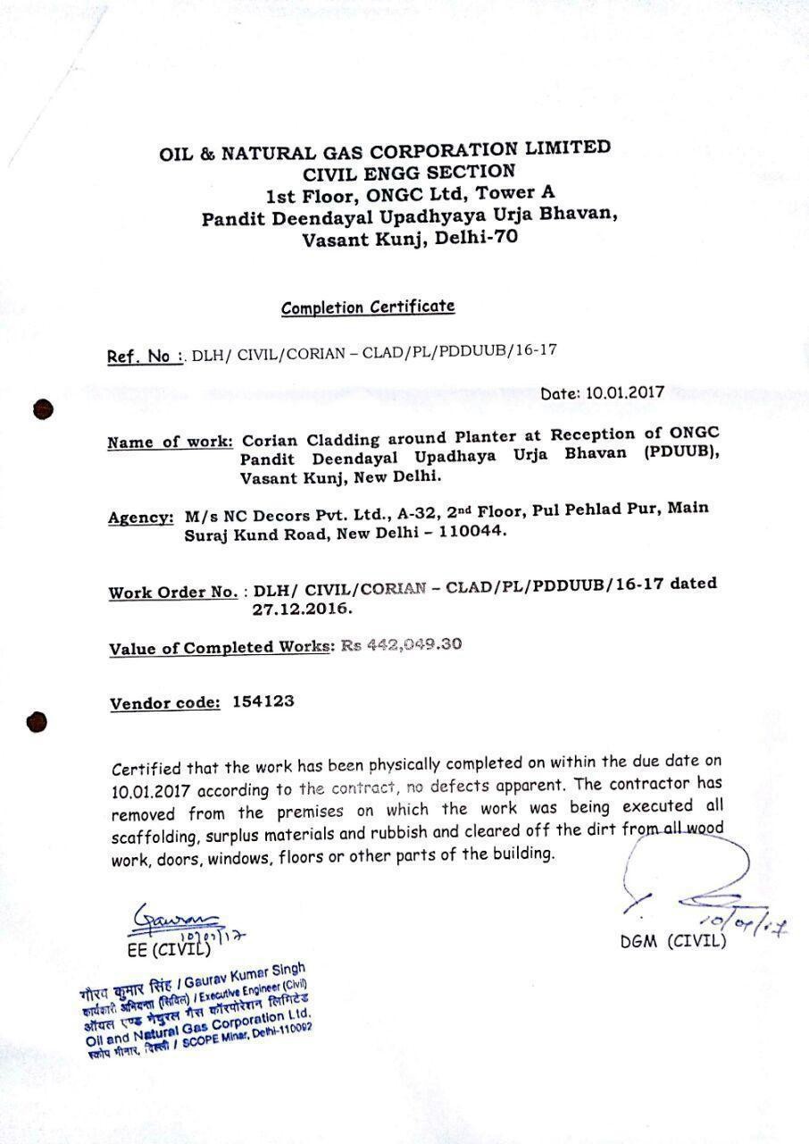 NC Decors Private Limited a Part from NM Decors Private Limited has been involved in Interior Decoration for International Airports, Five Star Hotels, Commercial Complexes, Restaurants, Educational Institutions, Residential Projects. Our most recent feather for Interior work is completing 60,000.00 Square Feet of Office Area valued at 4 Crores for Air India & Indian Airlines (NACIL) in a record time of 90 days at International and Domestic Piers of International Terminal T-3, IGI Airport New Delhi, Designed by Singapore based M/s Total Integrated Design Pvt. Ltd.